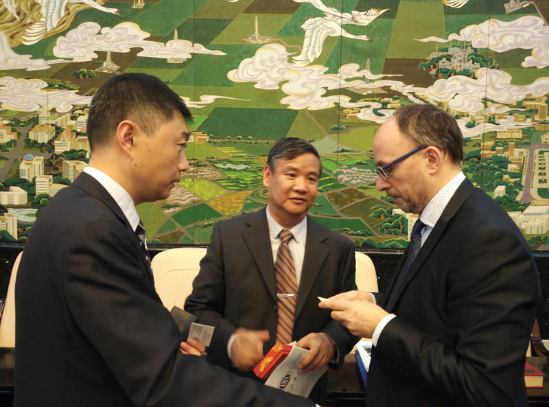 山东省教育厅副厅长郭建磊出席会议并介绍了山东省高等教育的整体情况,然后王西奎副校长着重介绍了我校的基本情况、学科优势、专业特色及国际化发展战略等,会议紧紧围绕“中意高等教育发展合作”主题,双方从“扩大教育交流渠道”、“开展中外合作办学及学分互认”、“联合进行科研及学术合作”等几个方面进行了深入交流探讨。