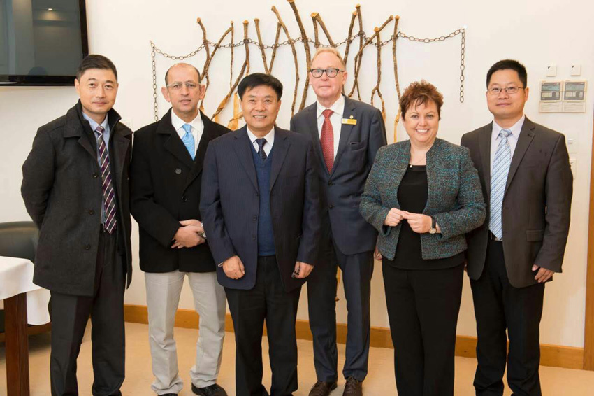 6月27日,代表团访问了澳大利亚南昆士兰大学(USQ)。与该校荣誉校长John Dornbusch、校长Jan Thomas、高级副校长Janet Verbyla、国际及发展部主任Talal Yusaf等分别举行会谈。双方同意先期在课程对接、学分互认、师生交换、合作办学、师资培训等方面开展多角度合作,尤其开展生物类多个专业的合作项目,拟形成长期的合作办学机构。