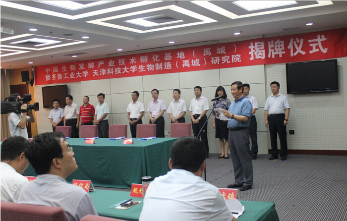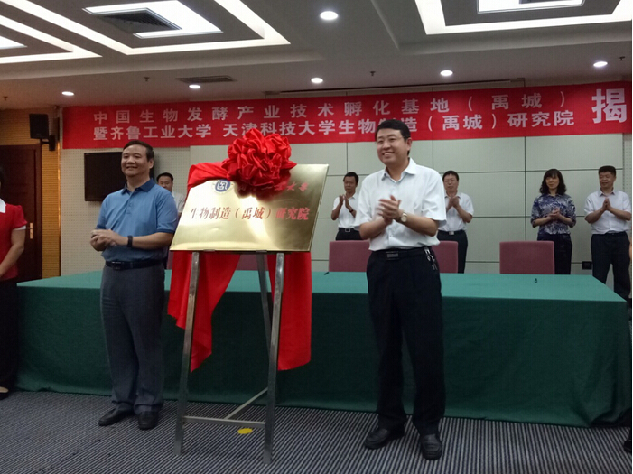 会上,石维忱、王西奎等分别致辞;中国生物发酵产业协会、齐鲁工业大学、天津科技大学与禹城市政府签订了战略合作协议;王西奎与王建国共同为“齐鲁工业大学生物制造(禹城)研究院”揭牌。