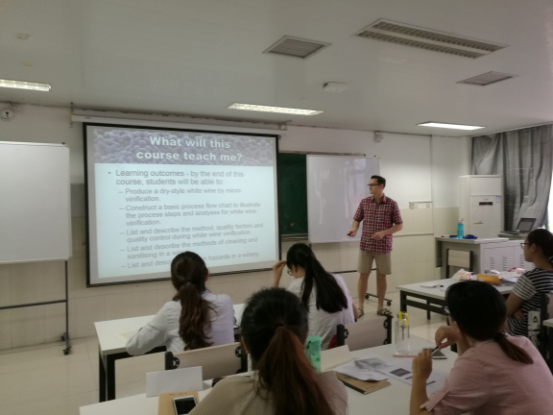 从2017年秋季学期开始到11月中旬,EIT葡萄酒学院的三位教师 Shaun Adam La Franco、David Giles Bloomfield和Timothy Paul Creagh将对我校2015级酿酒工程中外合作班同学进行葡萄酒科学、白葡萄酒酿造和葡萄酒网格和冠层管理等专业课程的全英语课程授课。我校生物工程学院酿酒工程系赴EIT学习归来的专业教师将积极地协助EIT教师高质量完成教学任务,帮助学生们突破语言障碍更轻松地全面掌握专业知识。