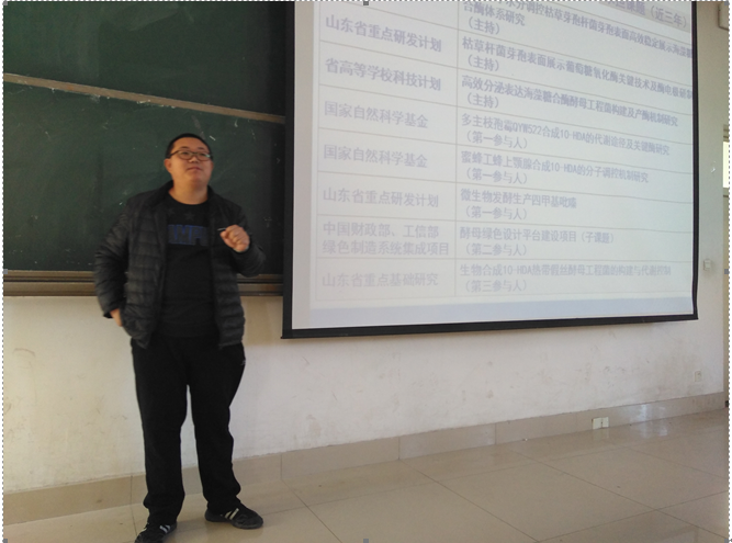 随后李丕武主任向大家详细地介绍了社团的宗旨和往届的学生活动。告诉大家“有想法,要敢于实践”。紧接着,李忠海介绍了自己的研究方向和往年的工作成果,通过不同年龄段对同一张照片的见解告诉了大家思维的重要性。王腾飞博士也对自己的研究课题进行了详尽的讲解,并希望有兴趣的同学加入。随后徐丽丽博士也对自己所在的实验室进行了详细的介绍,告诉大家“年轻人不要害怕失败,不要畏惧,敢于动手,敢于做”。最后,祝文兴博士用“三分钟”演讲向大家强调了“机会是留给有准备的人。”以及竞争的重要性。
