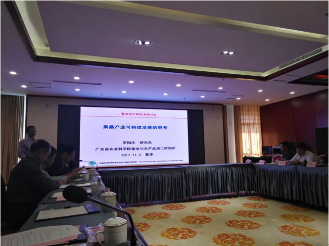 11月3日,在山东省夏津县德百温泉宾馆报告厅,来自山东大学、吉林农业大学、齐鲁工业大学、山东农业大学以及山东、广东、河北、陕西、台湾等多家研究机构的专家学者,以及夏津县圣源酒厂、东方紫酒业、济南红高粱酒业公司等多家企业负责人等,共同参加了由夏津县人民政府举办的“2017年第三届夏津县桑椹产业生物技术研讨会”。