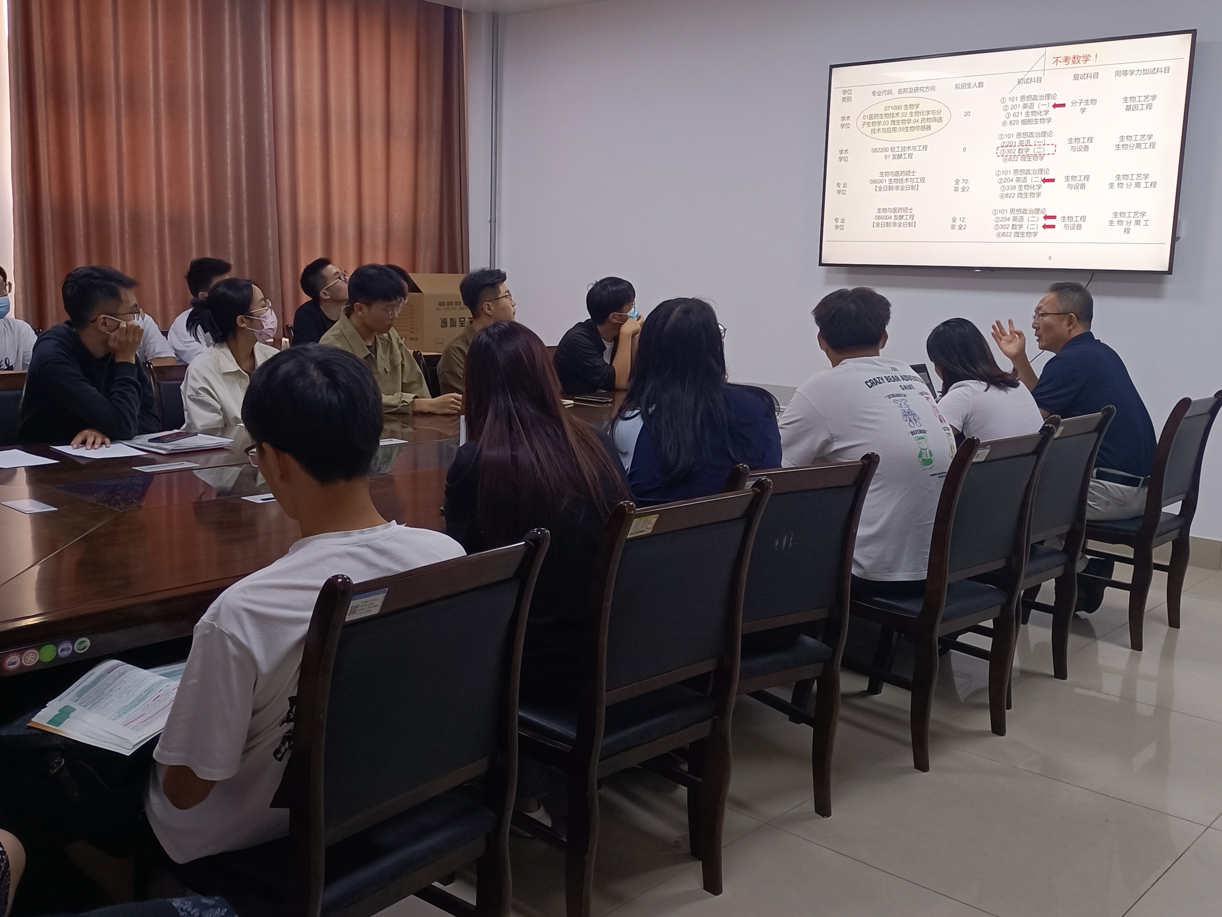 为使有意考研的生工学子明确考研目标,准确把握考研政策,掌握准备技巧,解答考研困惑,9月30日下午,生物工程学部在食工楼B206会议室举办考研政策解读会。学部副主任、硕士研究生导师李丕武教授为同学们解读考研政策并互动交流。