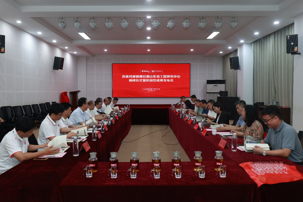 7月25日,药食同源健康白酒山东省工程研究中心揭牌仪式暨阶段性成果发布会在山东景阳冈酒厂有限公司正德堂会议室隆重举行。齐鲁工业大学生物工程学部党委书记张召宁,山东省中医药研究院党委书记于静之,山东第一医科大学药学院(药物研究所)副院(所)长周延萌,聊城市发改委党组成员、市能源发展服务中心党总支书记、主任王磊,阳谷县委常委、副县长秦立忠,聊城市发改委工业和高技术产业科科长张洪滨,阳谷县发改局党组书记、局长袁朝蓬,山东景阳冈酒厂有限公司董事长赵传新等领导、专家出席会议。