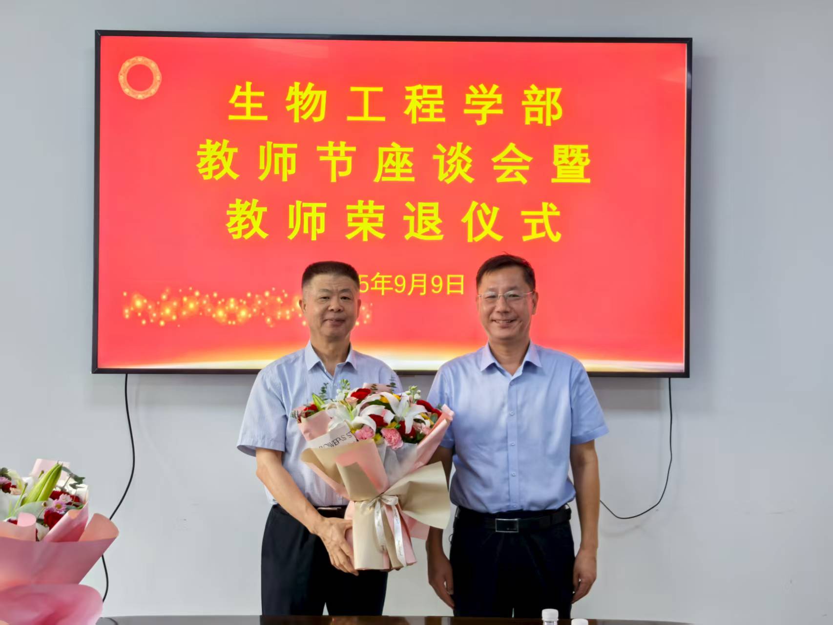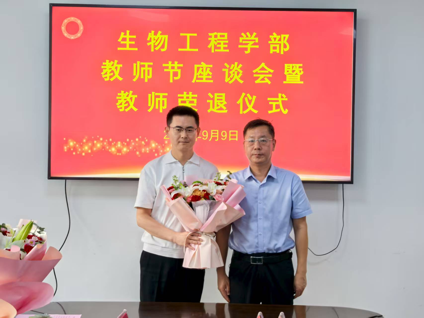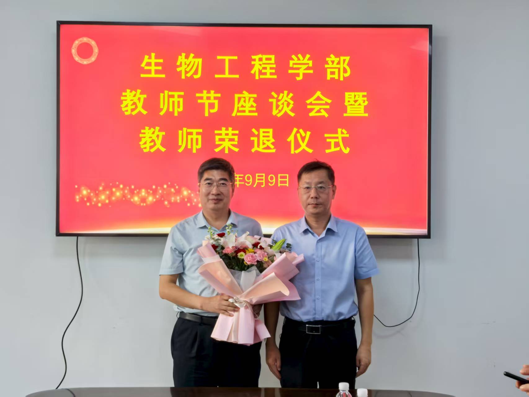 9月9日,在第41个教师节来临之际,校(院)党委副书记刘玉出席生物工程学部教师节座谈会暨教师荣退仪式,教师工作部副部长司晓宇、学部领导班子成员参加活动,仪式由学部党委书记张召宁主持。