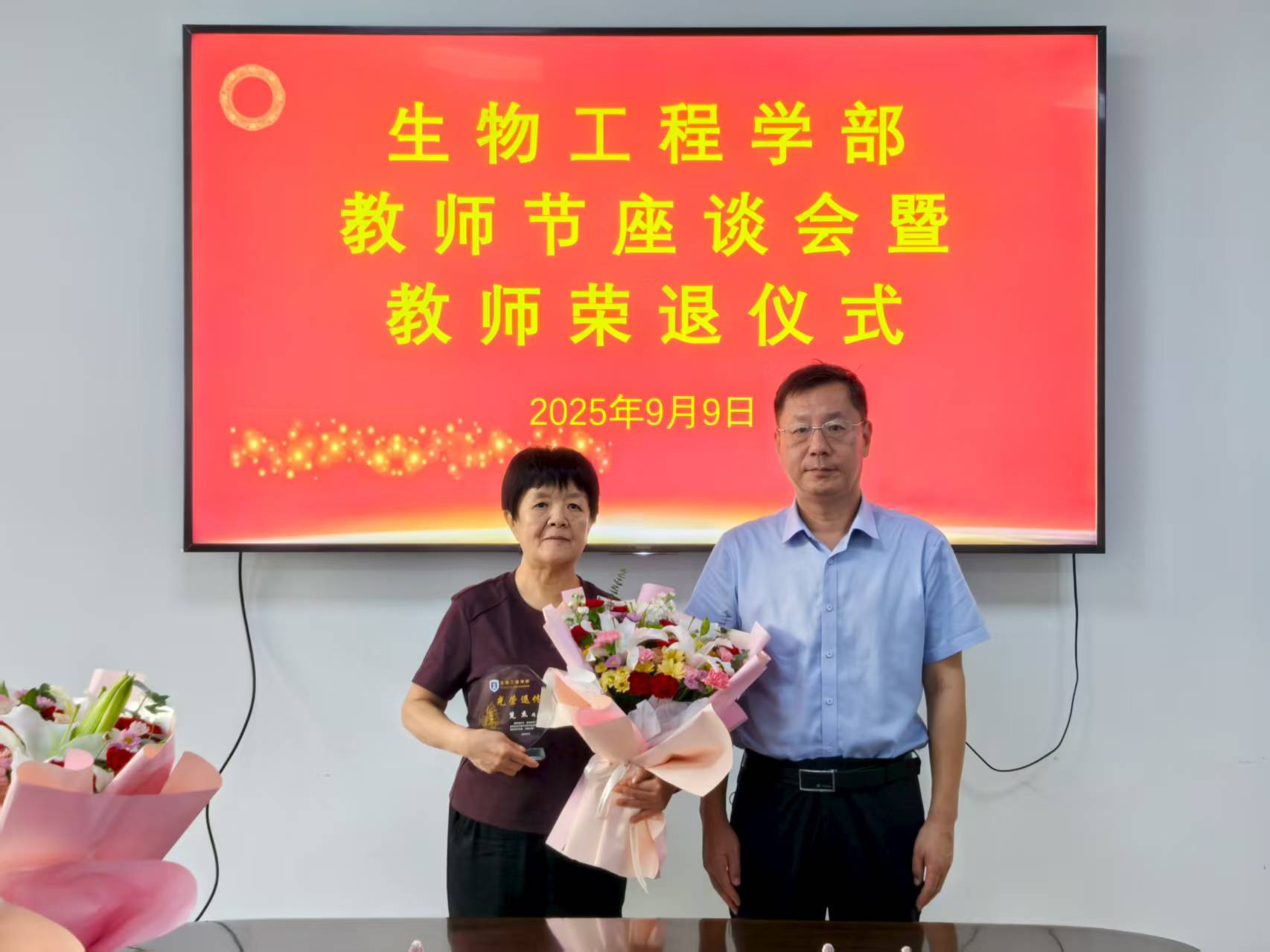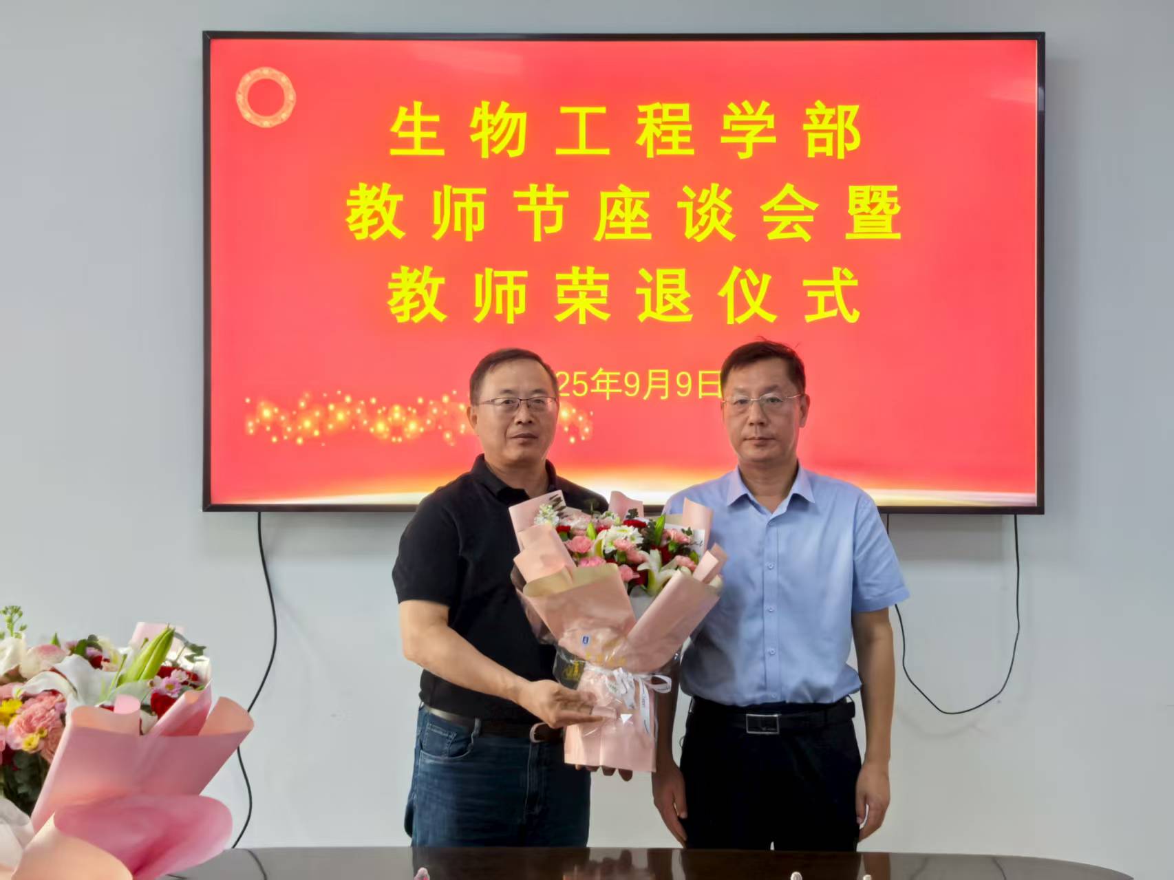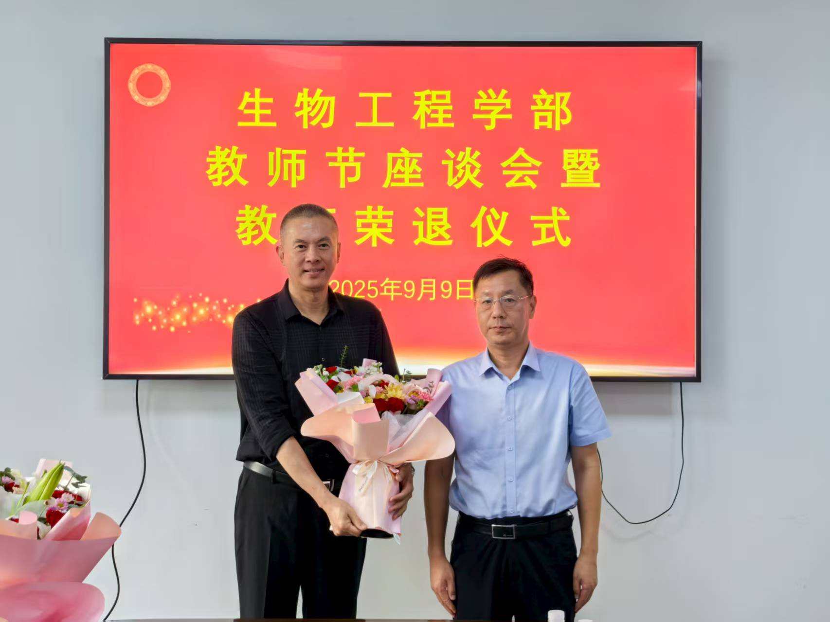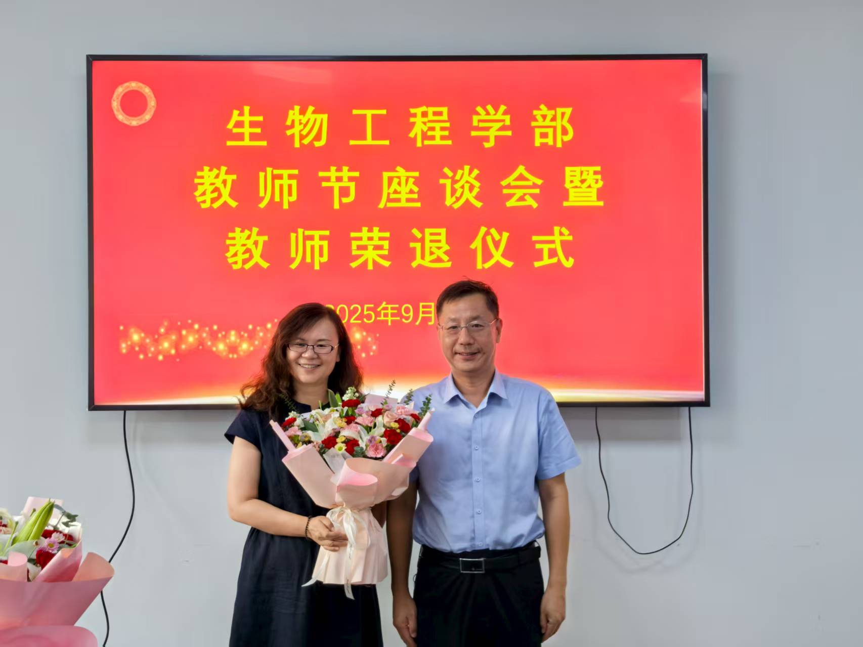 9月9日,在第41个教师节来临之际,校(院)党委副书记刘玉出席生物工程学部教师节座谈会暨教师荣退仪式,教师工作部副部长司晓宇、学部领导班子成员参加活动,仪式由学部党委书记张召宁主持。